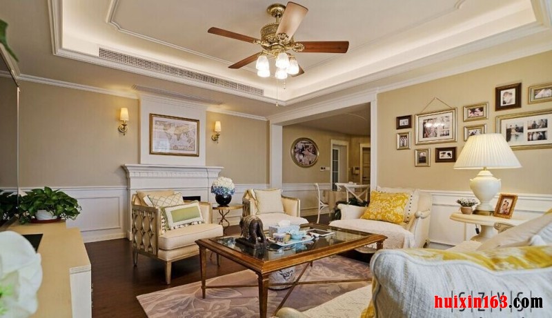 本套房屋装饰的主色彩是以白色为主,偶尔使用了鲜艳的色彩做点缀,客厅中石膏板吊顶上的装饰比较简单,不需要过多的造型设计便可以将中间那盏别致的吊灯衬托出来,电视背景墙上的装饰比较简洁,但并不失美感,米色的壁纸铺贴了墙面,使用了白色的石膏线条做了简单的设计,并在两侧安装了一组墙壁灯,更体现了对称的美感,电视下方摆放了一款带有镂空图案的电视柜,整体设计感与本套房屋装饰的主题十分相符,不仅为客厅设计增强了美感,更为客厅增添了一定的收纳空间,与之相对的沙发背景墙的装饰则更加富有意义,做出了照片墙的设计,多幅相框随意悬挂,照片上则是家人在一起的幸福时光,这样的设计更为客厅空间增添了一丝温馨、甜蜜之意。