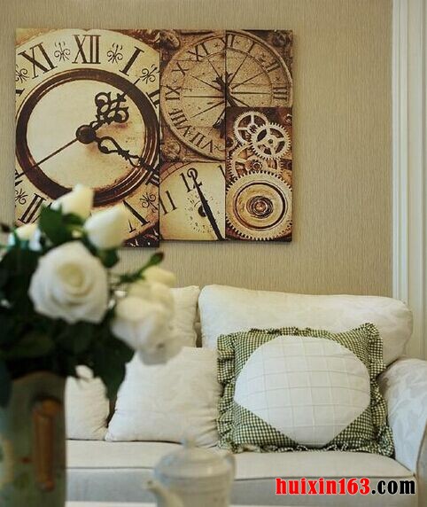 本套房屋装饰的风格比较适合大城市中的年轻人,在注重质感的同时有添加了许多时尚的元素,使房屋看起来不仅舒适而且也非常的具有设计感,一款纯白色的布艺沙发靠墙而放,米黄色的背景墙上悬挂了一幅以钟表为主题的装饰画,可以带给人们无限的幻想,同时也可以凸显出房屋主人的品味,宽大的落地窗前悬挂了一幅绿色带有碎花图案的布艺窗帘,整体效果个以带给人们一种非常清新的感觉,餐厅与客厅相连装饰的主色彩依然使用了白色,加入了青葱的绿色做点缀,是餐厅空间显得非常干净,而且也可以带给人们一种清新感,一款白色的长条餐桌的两侧搭配了同一款式的座椅,使整间餐厅都显得非常高档、大气。