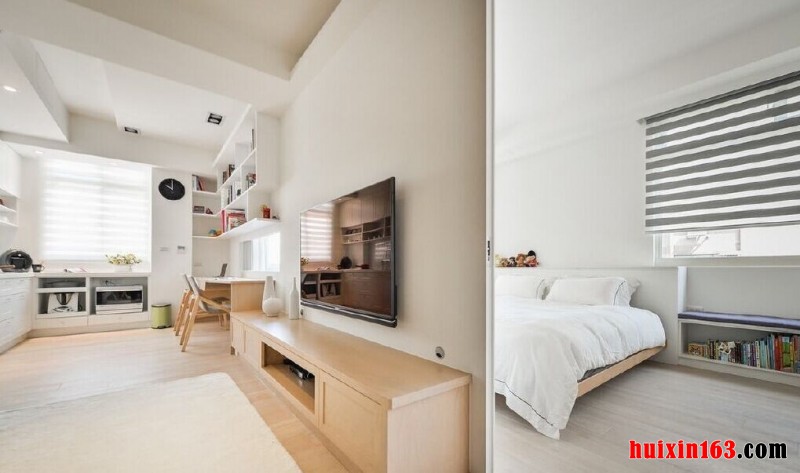 本套房屋装饰的主色彩是以白色为主,客厅中的装饰多以原木为主,可以在纯净的空间内,带给人们一丝自然的感觉,沙发背景墙的装饰比较简单,由于业主比较喜欢音乐,也从事着这方面的工作,所以设计师也将此融入在了设计当中,可以增加客厅装饰的设计感,同时也可以像来客们展现出业主的喜好,书房的设计也没有添加过多的装饰,可以带给人们一种自然的亲切感,在墙壁上做出格架的设计,也可以有效的节省房屋的使用面积,而且这样的设计也比较复合现代家居装饰的风格,卧室与客厅相连,只是简单的打了隔断,可以节省更多的空间,同时这样的设计也具有一定的装饰美感,卧室内的装饰都比较注重质感,柔软舒适的床饰搭配上原木淡淡的色彩自然可以营造出一个舒适、温馨的休息空间。