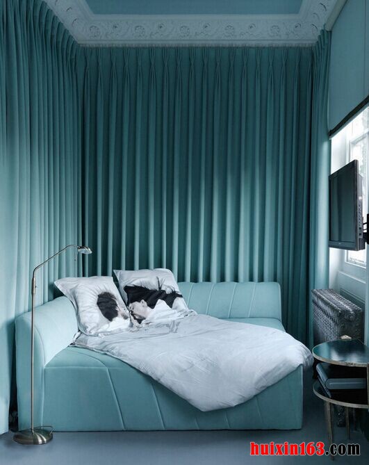 本套房屋装饰设计比较具有特色,装饰的主要色彩是以水蓝色以及白色为主,清新的色彩搭配上一些具有质感的家具,可以带给人们一种舒适感,同时也使房屋的整体装饰显得更加典雅、高贵,客厅中一款造型独特的蓝色沙发靠墙而放,似乎与蓝色的背景墙交融在了一起,沙发背景墙的设计比较简单,只是悬挂了两组体积比较大,凡是非常富有个性的墙壁灯,整体搭配的效果非常具有设计感,卧室中的墙壁上使用了白色的石膏板雕刻出了精美的图案,搭配上别致的床饰图案,更加彰显了大气风范,床头两侧的小柜子,选用了白色款式,圆形小巧的体积在蓝色的海洋中显得非常可爱,这样的造型设计也比较富很本套房屋装饰的风格。