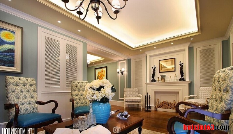 客厅中石膏板吊顶上的造型设计比较简单,平板的设计上有增添了一些条纹的设计,并在四周作了夹层设计,可以在夹层中安装一圈白色的灯带,将中间的黑色铁艺吊灯衬托的更加别致,餐厅中的石膏板吊顶比较具有设计感,中间凹槽的设计比较吸引人们的眼球,一款较长的吊灯低垂在圆形餐桌之上,整体装饰效果显得非常唯美、别致,书房中的设计比较静谧,四周的墙上没有安装窗户,可以使人们在阅读或是工作的过程中不受窗外事物的影响,一款实木材质的书桌,做工非常的精细,细节处理也非常别致,搭配在书房的环境中使其显得更加典雅、端庄。