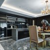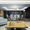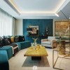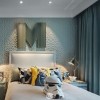 本套房屋装饰风格比较大气,客厅中的石膏板吊顶上做了简单的造型设计,并在四周的夹层中安装了一圈白色的灯带,是空间显得更加明亮,一款蓝色的沙发,摆放在窗前,上面搭配了多个不同款式的抱枕,使其装饰显得非常舒适,也为客厅增添了一份温馨,落地窗前悬挂了白色的轻质薄纱,无疑也成为了一种装饰,衬托出了沙发的设计感,同时也是客厅多了一份朦胧之意,一款木质茶几摆放在沙发中间,小巧的体积却并不缺少设计感,在起到装饰效果的同时,也为客厅空间增添了一定的收纳空间,也体现出了本套房屋设计的主题,非常符合现代房屋装饰的风格。